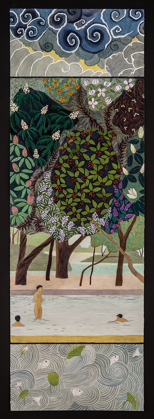 Delhi boys bathing (Acrylic on paper 74" x 24.5")